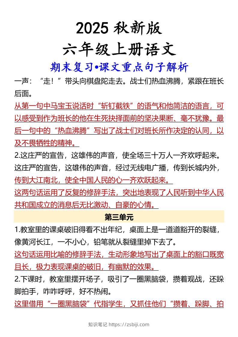 【2025秋新版】【六年级上册语文】期末复习•课文重点句子解析知识笔记9个月前发布关注私信0807【2025秋新版】【六年级上册语文】期末复习•课文重点句子解析此内容为付费资源,请付费后查看¥9.9¥19.9黄金会员免费钻石会员免费立即购买您当前未登录!建议登陆后购买,可保存购买订单格式pdf页数6 页大小315.77 KB付费资源 ------预览已结束,还剩4页未读------开通会员后可免费下载高清完整文档 © 版权声明文章版权归作者所有,未经允许请勿转载。THE END小学语文 喜欢就支持一下吧点赞7 分享QQ空间微博QQ好友海报分享复制链接收藏