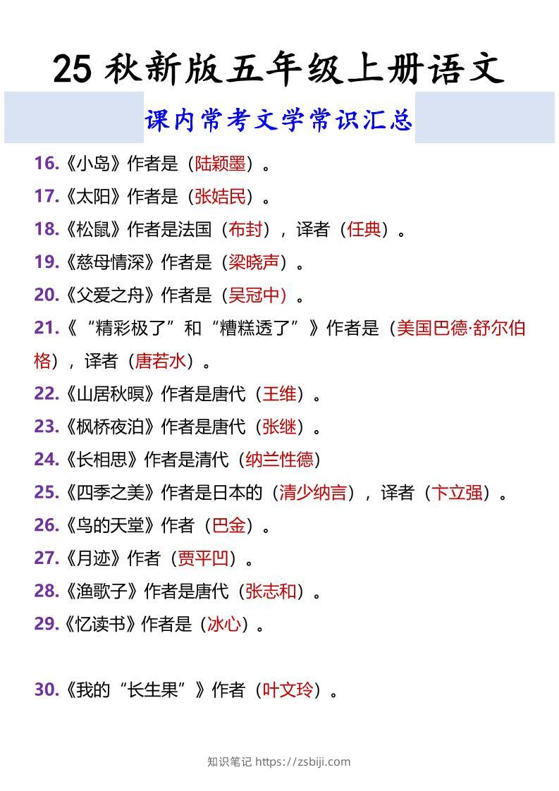 【2025秋新版】五年级上册语文课内常考文学常识汇总知识笔记9个月前发布关注私信0655【2025秋新版】五年级上册语文课内常考文学常识汇总此内容为付费资源,请付费后查看¥9.9¥19.9黄金会员免费钻石会员免费立即购买您当前未登录!建议登陆后购买,可保存购买订单格式pdf页数3 页大小128.61 KB付费资源 ------预览已结束,还剩1页未读------开通会员后可免费下载高清完整文档 © 版权声明文章版权归作者所有,未经允许请勿转载。THE END小学语文 喜欢就支持一下吧点赞5 分享QQ空间微博QQ好友海报分享复制链接收藏