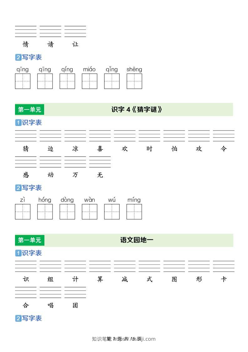 一年级下语文【识字表+写字表】专项练知识笔记1个月前发布关注私信05315一年级下语文【识字表+写字表】专项练此内容为付费资源,请付费后查看¥9.3¥19.9黄金会员免费钻石会员免费立即购买您当前未登录!建议登陆后购买,可保存购买订单格式pdf页数15 页大小344.38 KB付费资源 ------预览已结束,还剩13页未读------开通会员后可免费下载高清完整文档 © 版权声明文章版权归作者所有,未经允许请勿转载。THE END小学语文 喜欢就支持一下吧点赞15 分享QQ空间微博QQ好友海报分享复制链接收藏