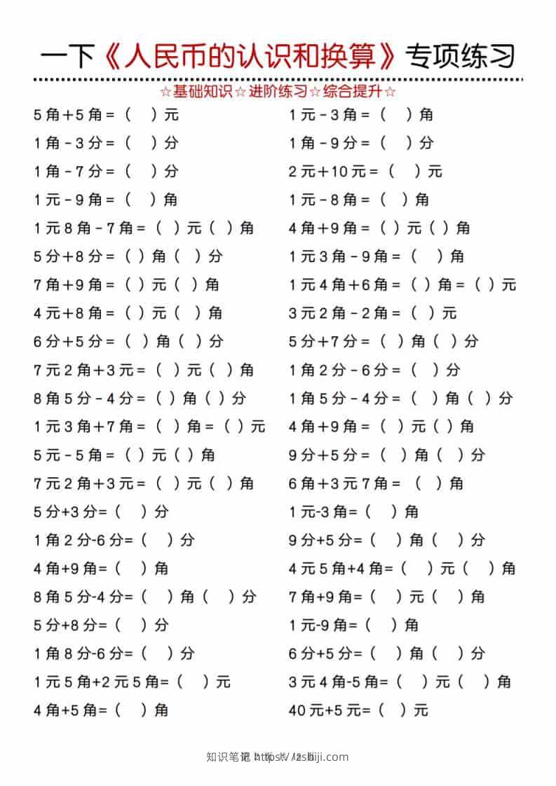 一年级下数学《人民币的认识和换算》专项训练知识笔记28天前发布关注私信0426一年级下数学《人民币的认识和换算》专项训练此内容为付费资源,请付费后查看¥9.4¥19.9黄金会员免费钻石会员免费立即购买您当前未登录!建议登陆后购买,可保存购买订单格式pdf页数15 页大小3.66 MB付费资源 ------预览已结束,还剩13页未读------开通会员后可免费下载高清完整文档 © 版权声明文章版权归作者所有,未经允许请勿转载。THE END小学数学 喜欢就支持一下吧点赞6 分享QQ空间微博QQ好友海报分享复制链接收藏