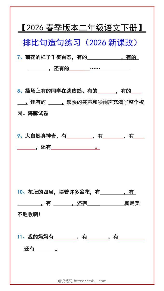 二年级下语文排比句造句练习知识笔记3小时前发布关注私信02715二年级下语文排比句造句练习此内容为付费资源,请付费后查看¥10¥19.9黄金会员免费钻石会员免费立即购买您当前未登录!建议登陆后购买,可保存购买订单格式pdf页数4 页大小135.32 KB付费资源 ------预览已结束,还剩2页未读------开通会员后可免费下载高清完整文档 © 版权声明文章版权归作者所有,未经允许请勿转载。THE END小学语文 喜欢就支持一下吧点赞15 分享QQ空间微博QQ好友海报分享复制链接收藏